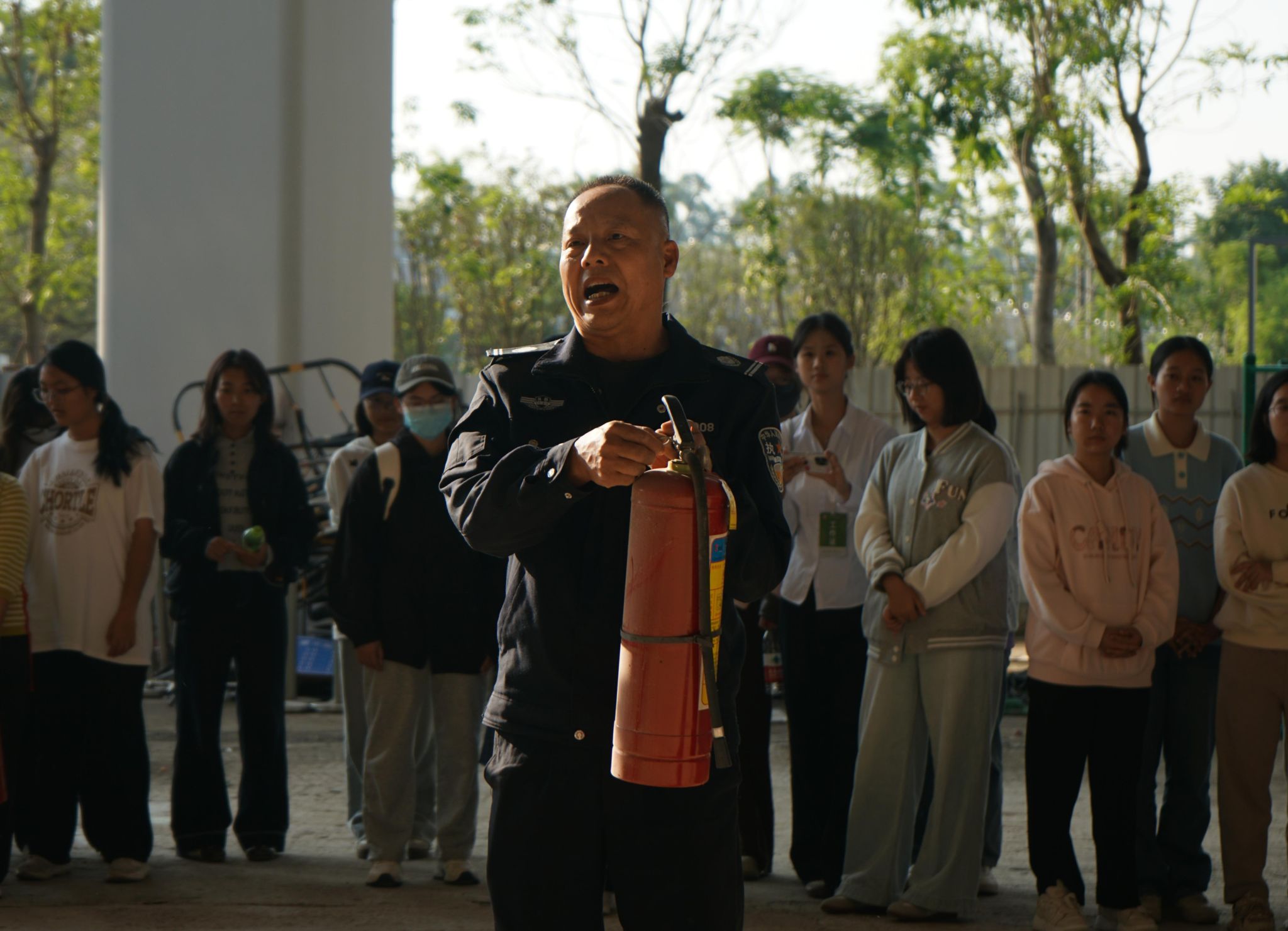 疏散演练结束后,保卫处工作人员在芝山桥下消防演练场为师生进行了消防安全知识现场讲解,重点强调了实验室、教室等场所的火灾风险点及日常防范注意事项,并详细讲解了干粉灭火器的构造、原理、操作步骤及使用要领。