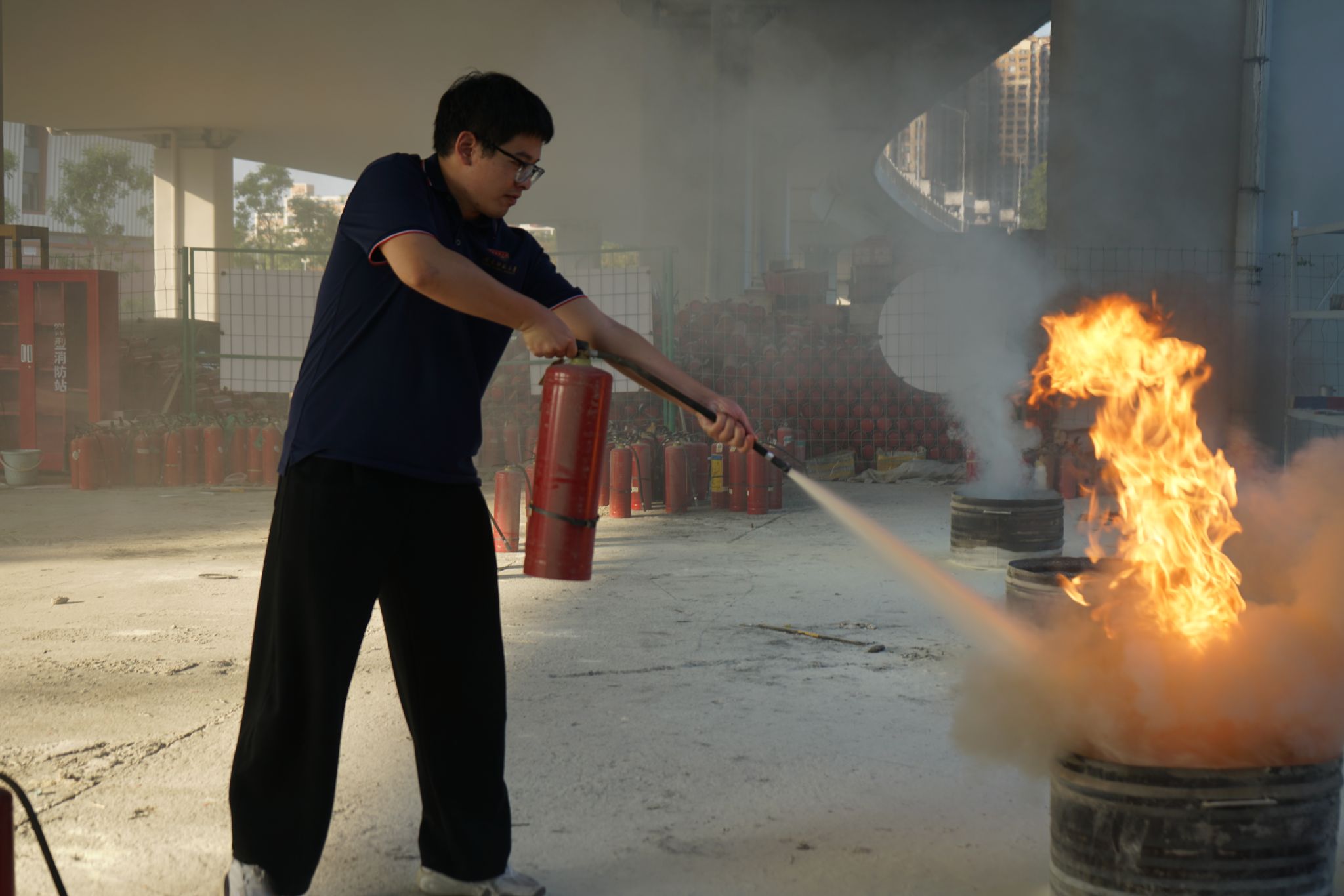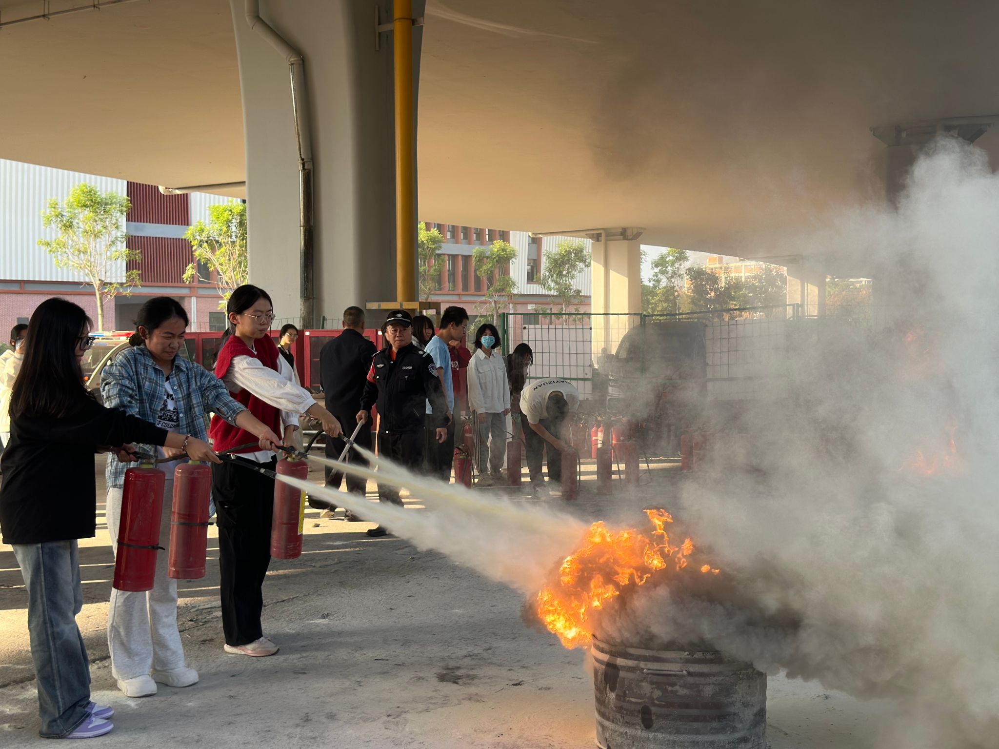 师生们在指导下踊跃参与,分批进行了灭火器实操体验,严格按照“提、拔、握、压”的步骤进行操作,成功完成灭火操作。